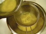 卵と調味料を合わせてときほぐして、だし汁を入れて混ぜ、ストレーナーで濾す。 |