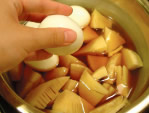 ゆで卵はさっと火を通してそのままおいて、味をしみこませましょう。 |